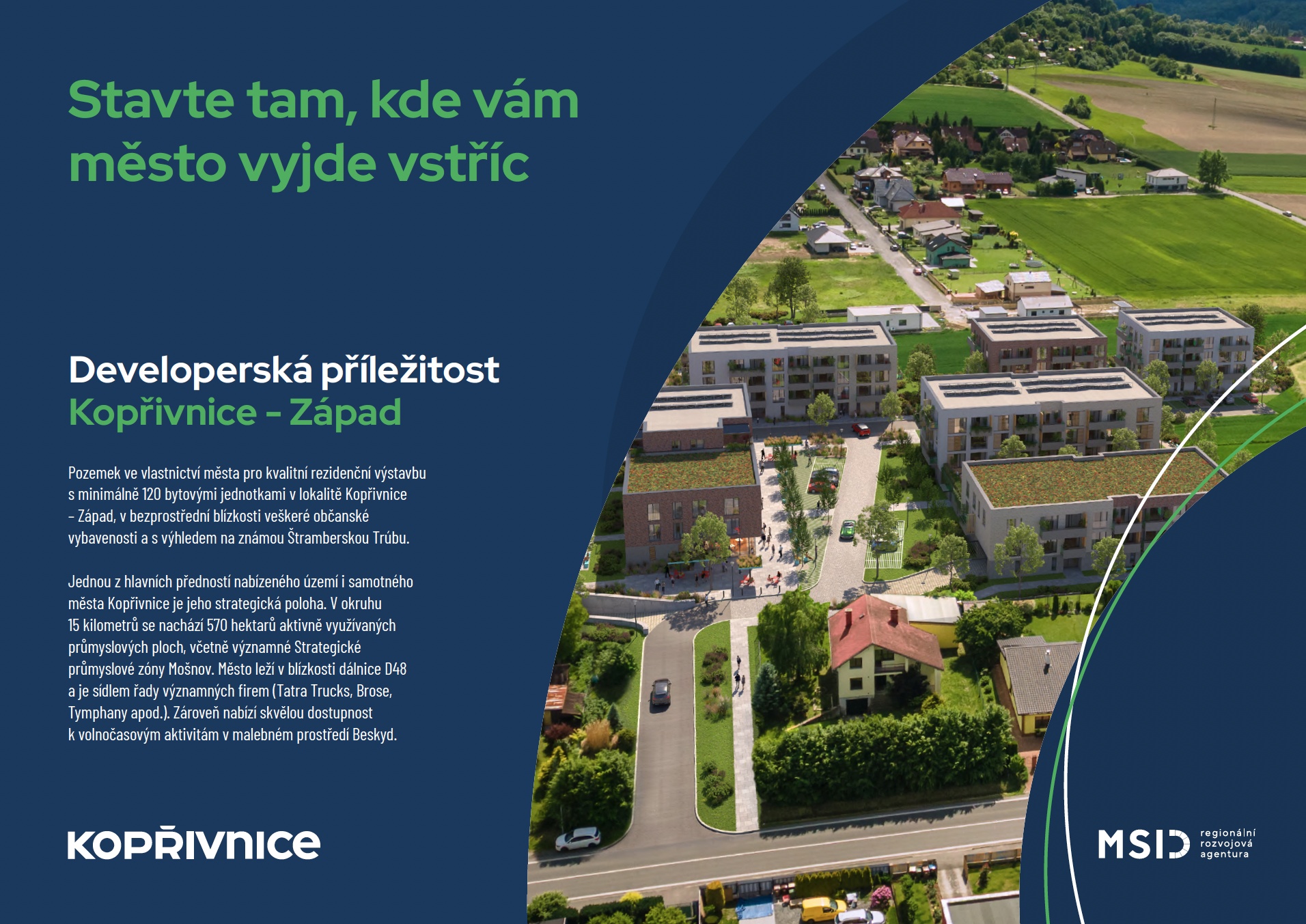 V Kopřivnici a okolí roste tlak na kvalitní bydlení a nepociťují ho jen obyvatelé, ale i firmy, které tu zaměstnávají tisíce lidí. V okolí 15 km od města se nachází přes 570 ha aktivně využívaných průmyslových ploch a zaměstnavatelé jako například Tatra, Brose, Remoska nebo Tymphany si stále více uvědomují, že kvalitní bydlení je klíčové pro nábor i udržení pracovníků. Město proto chce moderním bydlením nejen přesvědčit stávající obyvatele, aby zůstali, ale i podpořit příliv nově příchozích.