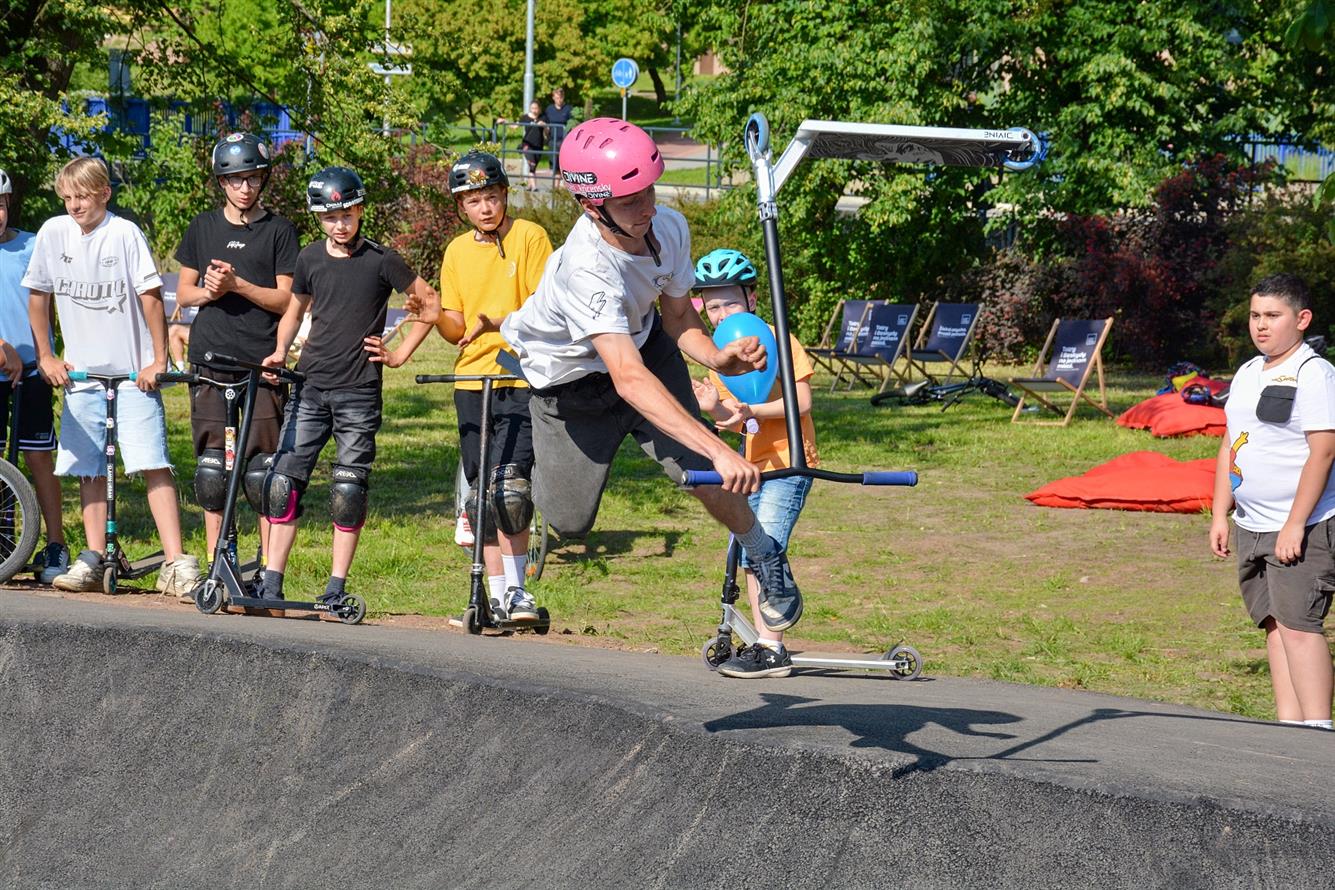 Slavnostní otevření nově dokončeného pumptracku doplnily exhibice zkušených jezdců.