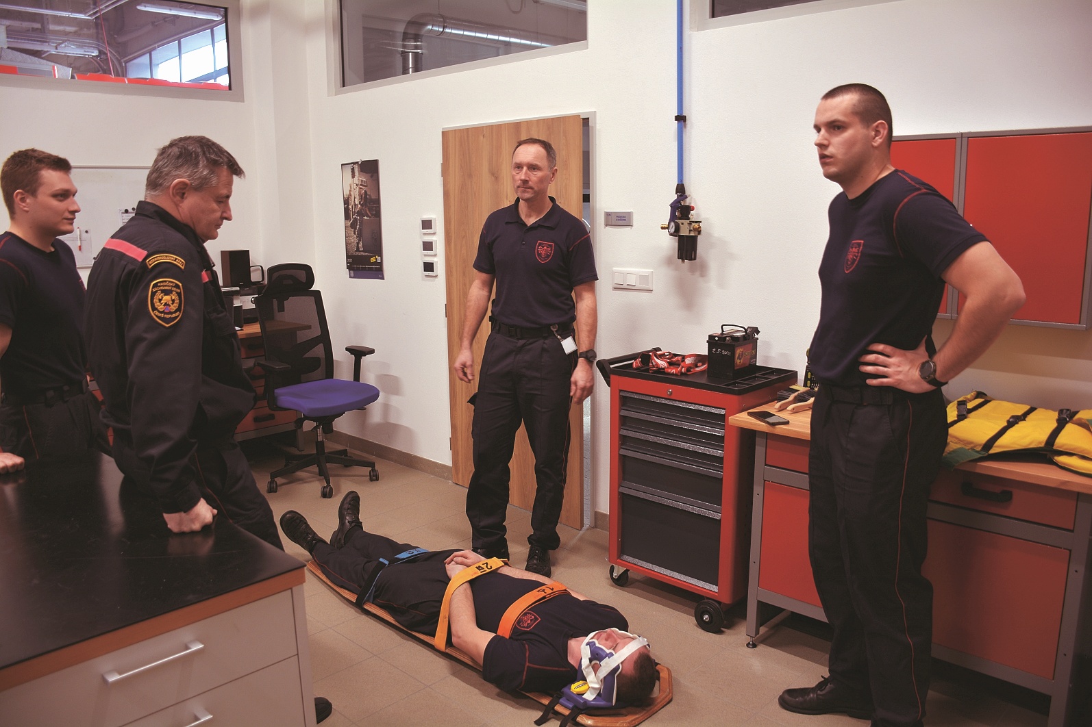 Součástí běžného pracovního programu profesionálních hasičů je neustálé opakování a drilování odborných činností včetně nácviku záchrany osob.