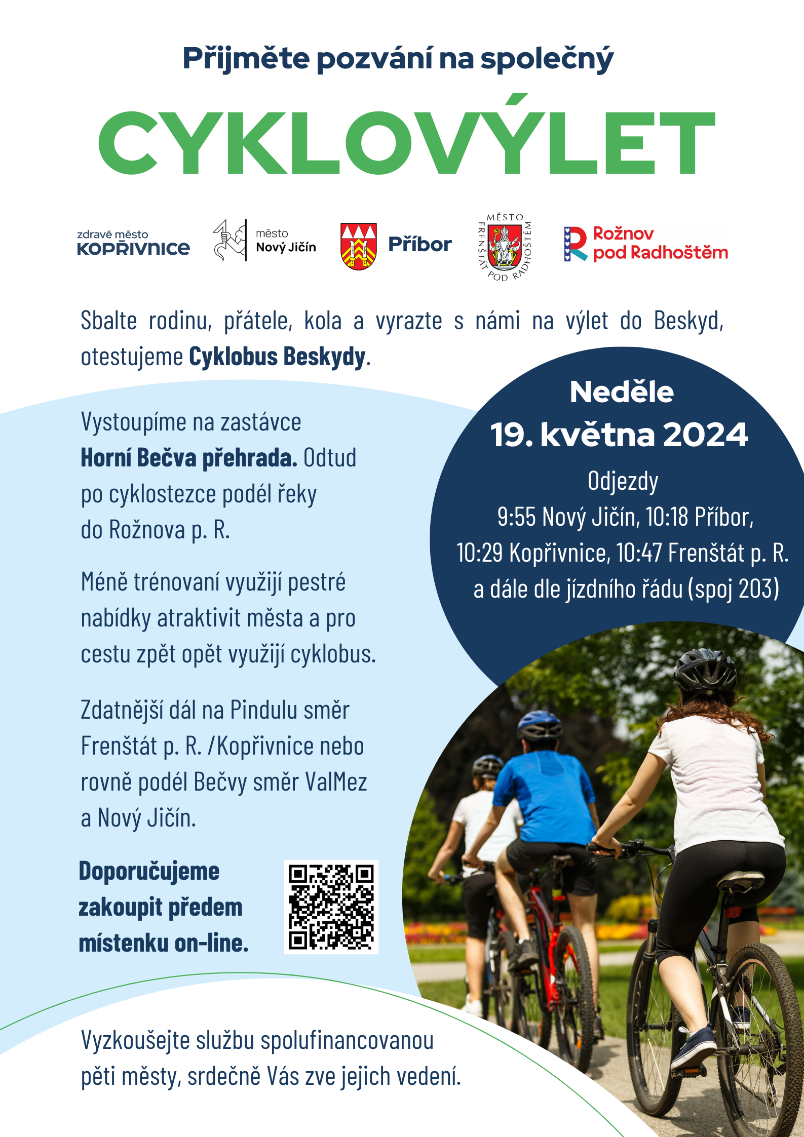 Líbila se Vám společná jízda Zdravých měst Kopřivnice a Nového Jičína na sdílených kolech? Máme pro Vás další ze společných počinů a tentokrát přibíráme další města a třeba i Vás. Zveme Vás na další z pohodových počinů, který posílí nejen Vaše lýtka, ale také sportovního ducha. Tentokrát se kousek povezeme, kousek pojedeme a možná se někde zastavíme.
