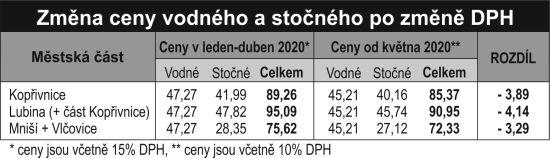 Stočné je ale rozdílné, v závislosti na provozovateli kanalizace. Největší část kanalizací v Kopřivnici obhospodařují Severomoravské vodovody a kanalizace (SmVaK), které odvádějí splaškovou vodu z většiny bytových domů ve městě. SmVaK snižuje od května cenu stočného o 1,83 koruny na konečnou cenu za metr krychlový za stočné 40,16 koruny včetně DPH. Celkově domácnosti zaplatí od května méně za vodné a stočné o 3,89 koruny včetně 10% DPH.